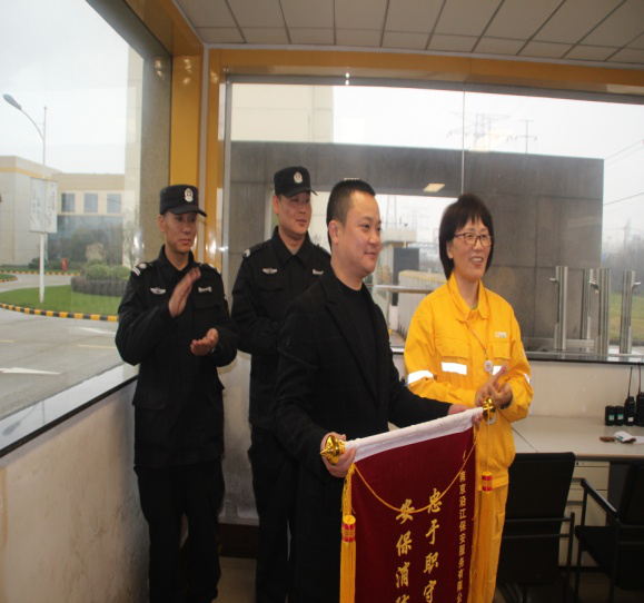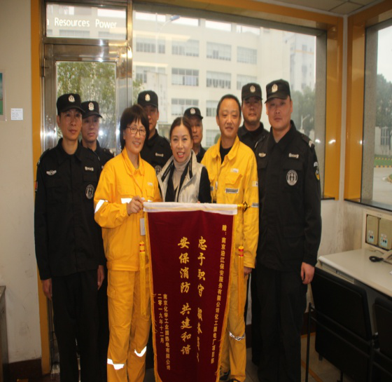 高曉萍主任代表熱電公司對保安在維護企業(yè)安全穩(wěn)定所做出的貢獻表示感謝,并授予旌旗。