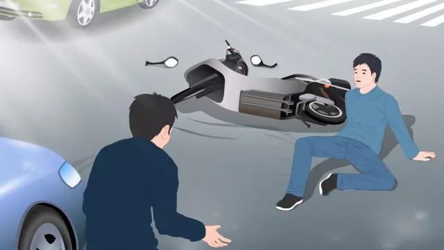 小強(qiáng)騎著電動(dòng)車闖紅燈,無(wú)暇顧及一輛輛汽車呼嘯而過(guò),一輛轎車躲閃不及,一下子將他撞倒在地。